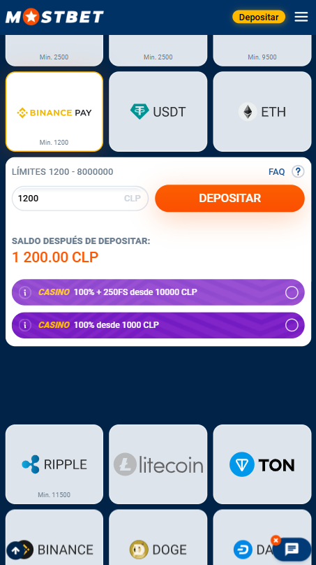 Instrucciones para depositar en Mostbet desde Chile