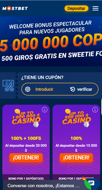 Una vez completes tu registro, puedes elegir entre un bono para apuestas deportivas o para casino. Si optas por el bono de casino, Mostbet te acredita hasta 5.000.000 COP y te otorga hasta 250 giros gratis. El monto del bono depende del valor de tu primer depósito: cuanto mayor sea, más recompensas recibirás. Las tiradas se activan en tragamonedas específicas, que varían según los términos de la promoción.