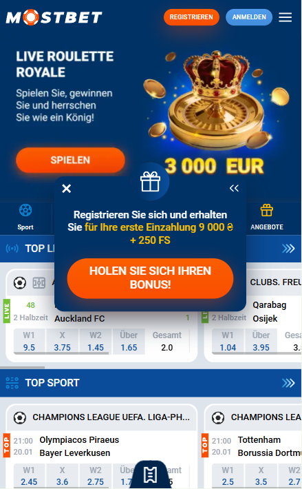 Willkommensbonus bei Mostbet Deutschland: bis zu 1.600 EUR + 455 Freispiele