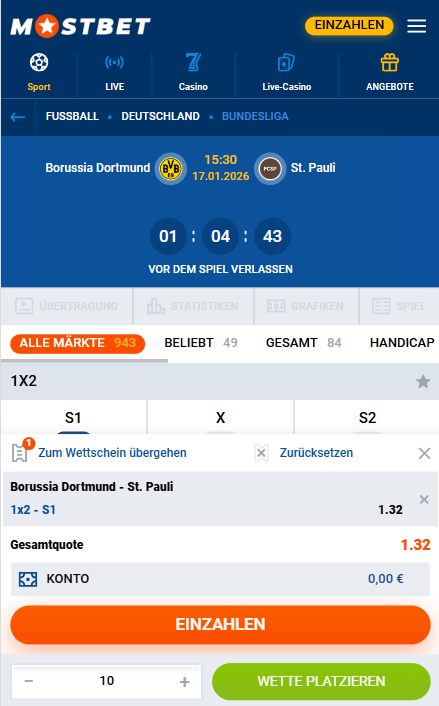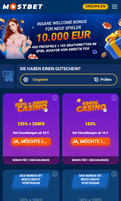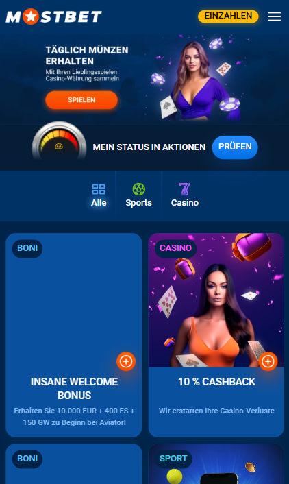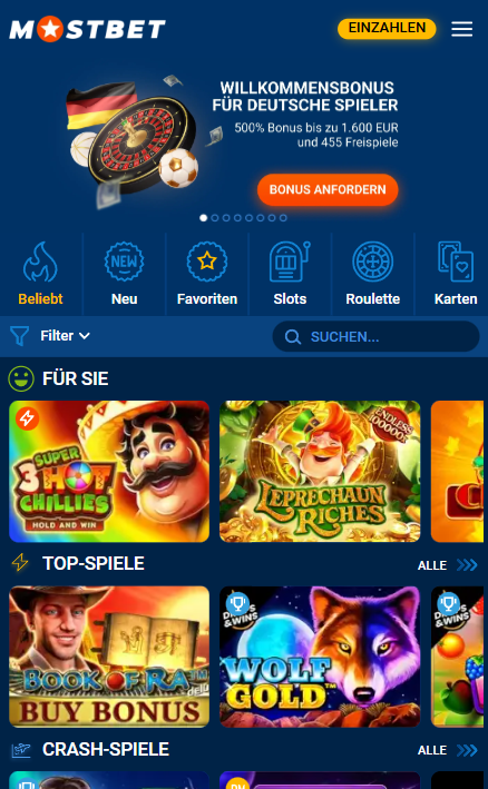 Die Plattform kombiniert Sportwetten, Live-Wetten und ein umfangreiches Online-Casino mit tausenden Spielen von bekannten Providern. Für neue Nutzer in Deutschland bietet Mostbet attraktive Willkommensboni, darunter Einzahlungsboni bis zu 1600 €, Freispiele sowie spezielle Aktionen für Casino- und Aviator-Spiele. Dank deutschsprachiger Oberfläche, moderner mobiler Apps und flexibler Einzahlungsmöglichkeiten hat sich Mostbet als vielseitige Plattform für Casino- und Sportfans in Deutschland etabliert.