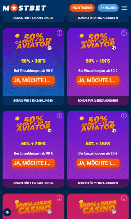 Neben dem Startbonus stellt Mostbet auch Aviator-relevante Boni für weitere Einzahlungen zur Verfügung: