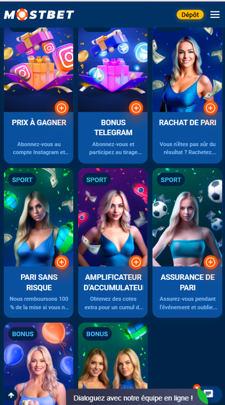Les nouveaux joueurs inscrits sur Mostbet France peuvent profiter d’un pack de bienvenue flexible: jusqu’à 1000 € répartis sur vos cinq premiers dépôts, accompagnés de jusqu’à 400 tours gratuits pour les machines à sous ou 70 paris gratuits sur les événements sportifs. Vous pouvez choisir le type de bonus – casino ou sport – soit au moment de l’inscription, soit plus tard dans la section « Caisse » du site ou de l’application.