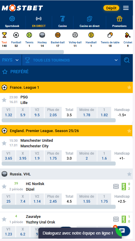 Paris sportifs sur Mostbet France – ligne complète, paris en direct et cotes compétitives