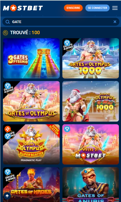 Gates of Olympus est souvent inclus dans les bonus casino Mostbet, notamment :