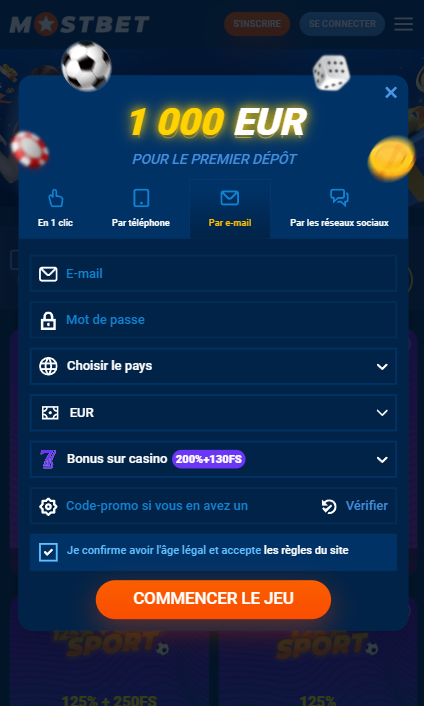 1. ouvrir le formulaire d’inscription Mostbet ;