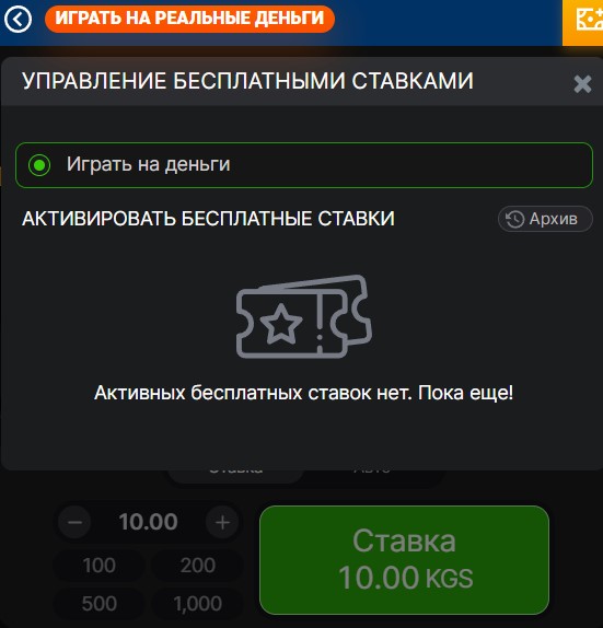 Минимальная сумма ставки зависит от условий платформы, но обычно она доступна даже для игроков с небольшим балансом, что делает игру удобной для новичков. Для игроков из Кыргызстана это 10 KGS.