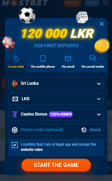 ශ්රී ලංකාවේ Mostbet හි ලියාපදිංචිය මිනිත්තු කිහිපයක් පමණක් ගත වන අතර, ක්රම කිහිපයකින් සිදු කළ හැක. පරිශීලකයාට තම අභිරුචිය අනුව වඩාත් පහසු ගිණුම් සෑදීමේ ක්රමය තෝරා ගත හැක.