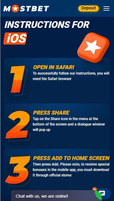 iPhone භාවිතා කරන්නන් සඳහා Mostbet LK විසින් web-app ආකෘතියක් ලබා දෙන අතර, එය සංකීර්ණ ස්ථාපනයකින් තොරව වෙනම යෙදුමක් ලෙස ක්රියා කරයි.
