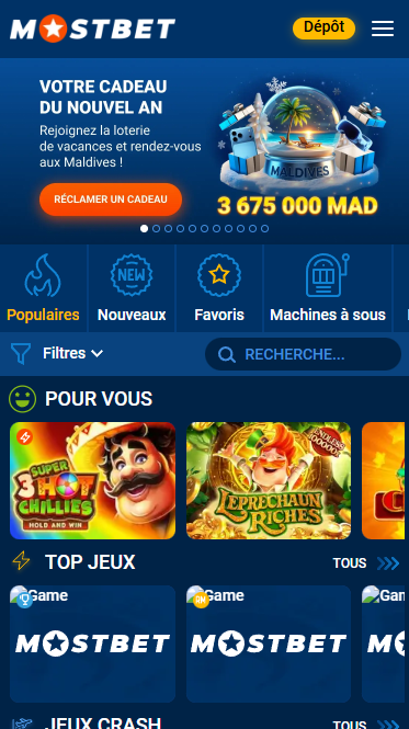 Les nouveaux joueurs au Maroc peuvent obtenir un bonus de bienvenue jusqu’à 5 000 MAD sur le premier dépôt, ainsi que des Free Spins supplémentaires pour le casino ou des bonus pour les paris sportifs. Le site et les applications mobiles Mostbet fonctionnent de manière stable sans VPN, ce qui rend le jeu pratique aussi bien sur PC que sur smartphone.