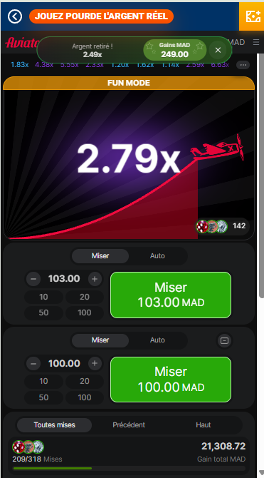 Aviator est disponible sur Mostbet pour les utilisateurs du Maroc aussi bien dans la version navigateur du site que dans l’application mobile pour Android et iOS. Le jeu prend en charge les mises en dirhams marocains (MAD) et fonctionne sans nécessité d’utiliser un VPN.